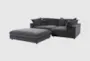 The Supreme Lounger Storm Grey Fabric 108" 2 Piece Oversized Modular L-Shaped Sectional with Right Arm Facing Chaise & Ottoman Set is perfect for your living room. Featuring a casual style and comfortable design, this sectional is made from a blend of 70% recycled polyester and 30% polyester fabric. With a right-facing orientation and solid hardwood frame, it promises durability and a cozy seating experience.