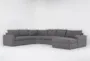 The Isabella II Charcoal 157" 4 Piece Full Sleeper Sectional with Right Arm Facing Chaise & Wedge Corner is a perfect addition to any modern living room. Its sleek design and grey fabric upholstery provide a contemporary look that complements various decor styles. This sectional offers ample seating space and includes a full sleeper, making it ideal for hosting guests.