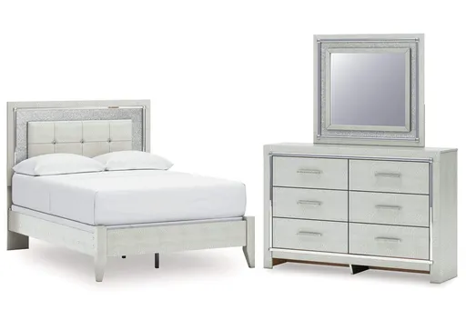 Bright, bold luxury. The Zyniden bedroom package dazzles with its attention to detail. Your love of glamorous style is reflected in its all-over faux gator in a metallic finish, exquisitely paired with faceted chrome-tone details. With its opulent approach to bedroom style, this set inspires you to live luxuriously every day.