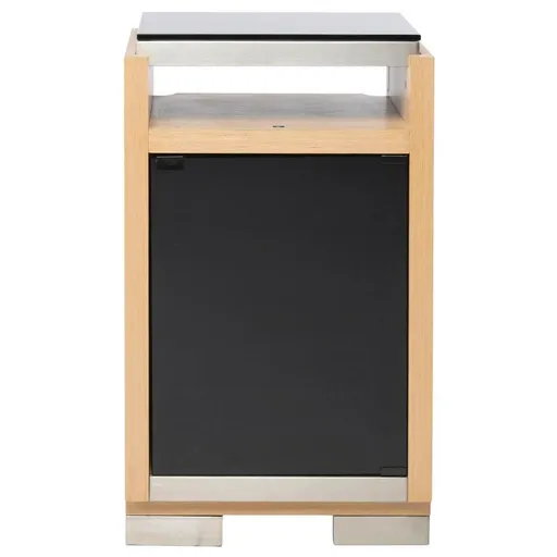 The Teire Natural Right Cabinet isn't your typical chest, and that's exactly what makes it so perfect. Made of oak veneers with flat polished edge glass and block-style brushed metal legs, this modern cabinet features LED lighting, a 3-way touch dimmer, and push-to-open doors.