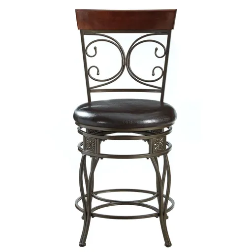 With classic design and style, this chair could be the perfect addition to your home. The dark bronze metal finish and dark brown upholstered seats perfectly compliment each other. This stool is designed to suit large and small people with a generous size and plump cushion. The back has a bronze design and the bottom has square textured details.