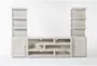 Any wall can transform into a striking media hub with our Kenzie entertainment collection. These designs boast a combination of solid wood, engineered wood and maple veneers in a drifted white finish, which lends a light and airy rustic look. Asymmetrical shelves create clean, interesting lines, while cord cutouts provide sleek and easy wire management for your equipment.