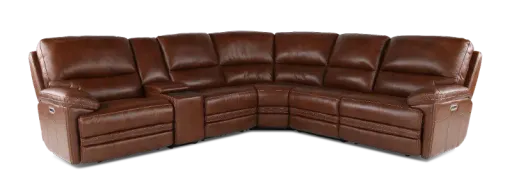 Looking for sophisticated design and comfort with unrivaled value? Say hello to the David Power Reclining Sectional! Undeniably plush, feel yourself sink into the wide seat cushions, divided backs, and lofty pillow-padded arms. The David Sectional provides comfy seating for everyone in the family! The power headrest and power lumbar on the power reclining pieces allow you to adjust the settings at the touch of a button to find the ideal position for relaxation. Upholstered in a buttery-soft, protected top-grain leather, this reclining sectional is designed for everyday enjoyment and active lifestyles. Sectional includes one left-arm facing power recliner, one console, one armless power recliner, one corner wedge, one armless chair, and one right-arm facing power recliner.