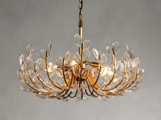 Handcrafted from steel with brass plating, Adela scatters light through its beautiful glass petals. A lovely statement for any living space, softly sculpted petals create an organic feel, while steel branches secure the canopy and provide structure to the piece.