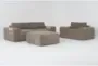 The Amallo Mocha Brown Fabric 108" 2 Piece Sofa Ottoman & Chair Set is the perfect addition to any living room. This modern set features a mellow mocha color and is made from 100% polyester fabric. Designed for comfort, the set includes tufted pieces with arms and down cushions, providing a firm seating experience.