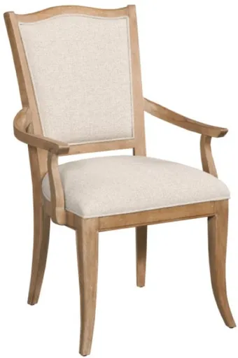 The American Drew® Chastain Weybridge Arm Chair offers a perfect blend of comfort and elegance. Featuring sturdy arms and a well-upholstered seat, it provides superior support and style. Ideal for dining or accentuating a living space, its refined craftsmanship adds a touch of sophistication to any room.