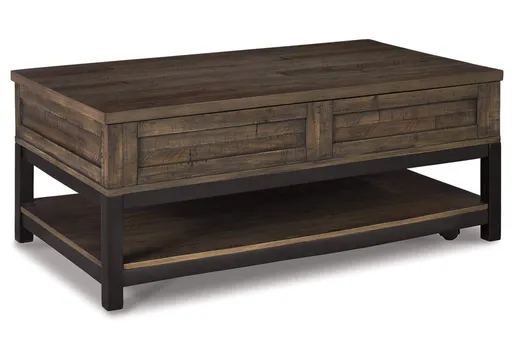Combining a two-tone finish with a gently distressed texture produces one very distinctive lift top coffee table. Whether your style is modern farmhouse or urban industrial, the Johurst coffee table with a spring-lift top is the perfect accent for your rustic retreat.