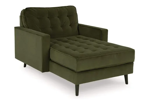 The Reveon Lakes chaise strikes the perfect balance between elevated and eclectic. Contemporary lines and a richly hued velvet upholstery keep things chic. Design details like button tufting and splay legs add mod flair. It’s sure to keep your living room luxuriously on trend—at a price that won’t break the bank.