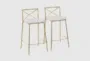 Harlon 25" Gold + White Metal Faux Leather Counter Height Stool Set Of 2 | Swivel | X Back | Armless