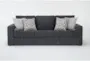 Introducing the Monterey Twilight Blue Grey Fabric 95" Queen Memory Foam Sleeper Sofa Bed, designed with comfort and style in mind. This contemporary piece features track arms and a loose reversible back, making it perfect for any living room. Upholstered in Langley Twilight fabric, this versatile sofa bed provides a cozy sleeping solution for overnight guests.