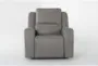 Experience ultimate comfort with the Liam Grey Leather Flexsteel Power Zero Gravity Recliner with Power Headrest & USB. This modern reclining chair is designed to provide personalized relaxation with its adjustable headrest and zero gravity feature. The top grain leather upholstery adds a touch of luxury while the USB port ensures your devices stay charged and within reach.