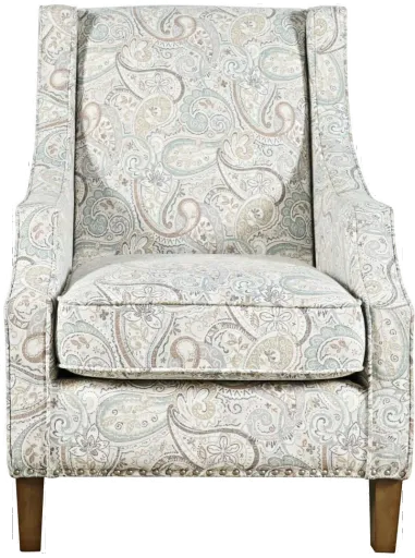 Fall in love with our Duval accent chair, a harmonious blend of timeless style and modern design. This exceptional chair exudes transitional charm with its distinctive wingback silhouette. Its graceful paisley pattern upholstery adds an air of sophistication to any room while the meticulous nailhead trim accents its contours with finesse.