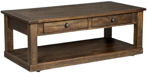 The Sunny Designs Homestead tobacco leaf coffee table blends rustic charm with functional design. Crafted from quality wood, it features a warm tobacco leaf finish, sturdy construction, and ample surface space, making it a stylish and practical living room centerpiece.