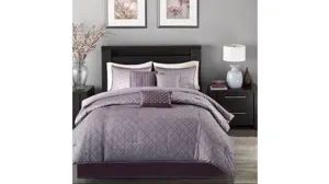 To update your space to a modern look, try the Biloxi queen 7-pc. comforter set. Made from polyester jacquard, this unique design is woven to look like sequins. The design has an ombre affect looking heavy in the center of the bed and spreading out towards the top and bottom of the comforter. Two matching shams share this ombre design. Three Decorative pillows use unique embroidery and fabric manipulation for the perfect new look for your space.