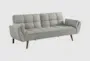 Introducing the Caufield Grey Sofa Bed, a versatile addition to any living room. This casual grey sofa bed is designed with comfort and functionality in mind, perfect for relaxing or accommodating guests. Upholstered in 100% polyester fabric, it features a tufted back and wooden legs, combining both style and durability.