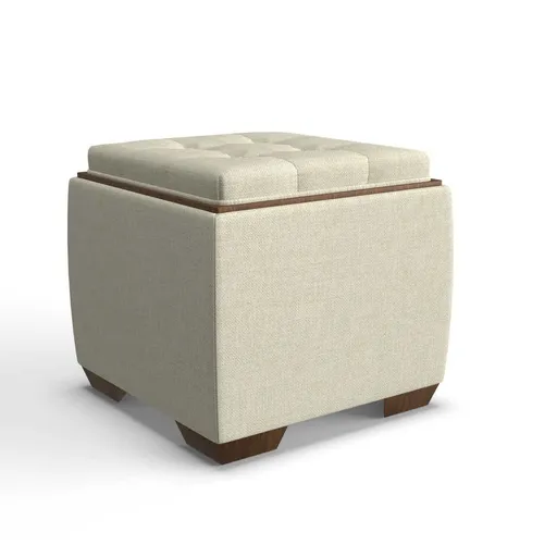 Stylish multifunctional ottoman,Reversable top with table surface,Inside storage with easy access,Decorative wood legs,High grade foam cushion maintains its comfort and appearance,Premium grade fabrics and leathers tested to resist wear and fading,Includes our Limited Lifetime Warranty,Customizable with your choice of fabrics and other available upgrades