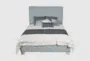 The Eldric Queen Woven Upholstered Panel Bed is a perfect blend of modern design and comfortable functionality. Its light teal and grey color scheme adds a soft, neutral touch to any bedroom. The bed features a woven fabric upholstery that enhances its contemporary appeal.