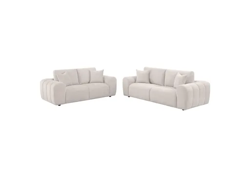 Bold curves and sculptural comfort define this modern sofa set, blending relaxed luxury with artistic form. Oversized arms and deep cushions create an inviting silhouette, while ultra-soft chenille upholstery offers a rich, cozy texture. Built from solid eucalyptus, oak, and engineered wood, each piece balances visual impact with everyday durability. Perfect for living rooms, lounges, or open-concept interiors that embrace bold style.