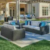 The Laguna Collection is a casual contemporary outdoor patio collection with a tightly woven, wicker design, for a transitional look that won't go out of style. Each piece in this 3 piece sofa group are handwoven with 8mm full round PE synthetic strands of resin wicker, treated with UV inhibitors, over a fully welded, handmade aluminum frame with a multi-step powder-coated finish and supported inner walls. The sofa, loveseat, and club chair are resort sized and feature textilene seat suspension. The textilene material's flexibility and sturdiness make it a comfortable material for seating.