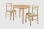 Josiah Natural Round Wood 35" Drop Leaf Kitchen Dining Table With Side Chair Set For 2 | Asian Hardwood