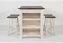 Pepper White Rectangular Wood Creek 36" Kitchen Counter | Shelves | Pine | Stool Set Of 2 | Storage