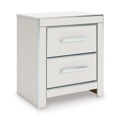 If glitz and glam are your jam, you’re gonna love the Birmonton nightstand. Large-scale handles and dazzling chrome-tone details add a pop of stunning pizzazz against a sophisticated matte white finish. USB charging keeps you connected, and the spacious storage drawers don’t disappoint. Loaded with serious sparkle, it's a simply splendid way to wake up your inner sanctum’s style.
