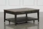 The Foundry Black 42" Wide Rectangle Wood Coffee Table is a versatile addition to your living room. Featuring a weathered toffee finish, this table combines rustic charm with practical functionality. Designed with storage drawers, shelves, and wheels, it offers ample space to keep your essentials organized.