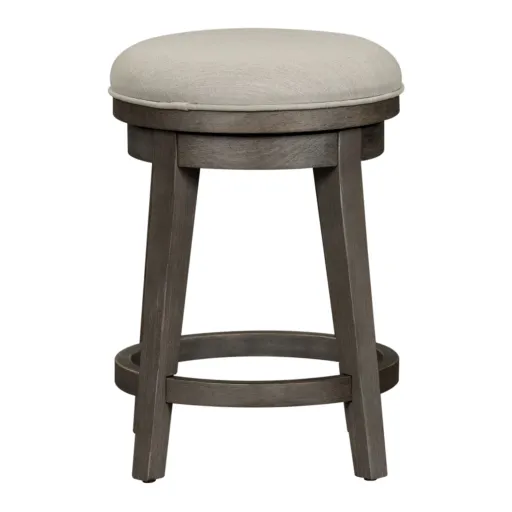 The Modern Farmhouse console stools are very versatile and can be used with our console bar, kitchen island or counter height tables. Designed to work with any décor from cottage to contemporary. Crafted of solid rubberwood legs in a dusty charcoal finish. Features a cushioned upholstered seat with a return swivel.