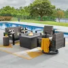 The Chelsea Collection contains concealed cushion seating composed of black and greys for a versatile look that blends with every style. Each piece in this 4 piece swivel loveseat group is handwoven with synthetic flat strands of resin wicker, treated with UV inhibitors, over a powder-coated aluminum frame. Sink into the triple-layer construction and quick-drying, foam-padded cushions of the loveseat and swivel club rockers and relax in comfort. With cushions built-in, you don't have to worry about securing cushions or having to readjust them.