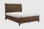 Introducing the Callum Queen Brown Wood Platform Bed with Footboard Storage. This traditional sleigh bed features a burnished brown finish that adds warmth and charm to any bedroom. Constructed from durable rubberwood, this bed offers not only style but also practical storage with its integrated drawers.