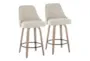 The Marcie 27" Counter Height Stool with Swivel in Whitewashed Wood and Cream Fabric is a perfect addition to your dining room. This set of 2 stools combines comfort and functionality with its swivel feature and brass nailhead trim. The round black metal footrest adds a touch of modernity to these contemporary stools.