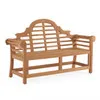 Constructed using a solid teak frame with a fine, sanded finish, this Marlboro bench adds a royal European look and convenience to your backyard. The bench's detailed design adds texture to your space while providing a comfortable seating experience with the curved arms and seat frame that allow your body to conform to the bench. This is one of the most durable materials we carry, teak is the only material with a natural resistance to water, insects, mold, and mildew. This bench is a combination of machine-made for precision and handmade with traditional Mortise and Tenon construction for smooth and tight joinery. You won't find another bench better suited for your backyard.
