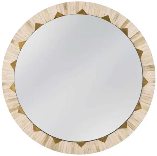 The Bassett Mirror Global gold/white bone wall mirror offers a functional reflective surface suitable for various spaces. Its frame features a blend of gold and white bone, providing durability and a refined touch, ideal for entryways, bedrooms, or living areas.