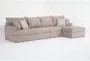 The Belinha II Taupe Beige Grey Fabric 138" Modular 3 Piece Sectional with Right Arm Facing Chaise is perfect for your living room. This versatile sectional is designed with a right arm facing chaise and track arms, providing both comfort and style. Upholstered in 100% polyester, this casual piece offers a soft and neutral look that complements any decor.
