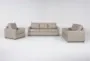 Enhance your living room with the Mathers Mocha Beige Brown Vegan Faux Leather 3 Piece Sofa Loveseat & Chair Set. This modern set features a sofa, loveseat, and chair, all designed with straight arms and a sleek, contemporary look. The mocha faux leather upholstery is made from 100% polyester, providing a soft and durable finish.