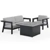 3. St Lucia Midnight Aluminum with Cushions 3 Piece Sofa Group 42 in Sq Fire Pit Table