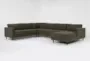 Transform your living space with the Calais III Green 142" 4 Piece Sectional with Right Arm Facing Chaise. This modern sectional features a stylish U shape and is upholstered in a beautiful green fabric, creating a cozy and inviting atmosphere. Designed for comfort and functionality, it is perfect for relaxing with family and friends.