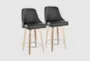 Enhance your dining room with the Marcie 26" Counter Height Stool. Featuring a contemporary design, this set of 2 stools is perfect for adding a touch of style and functionality to your space. The black faux leather upholstery pairs beautifully with the zebra wood, while the chrome nailhead trim and round chrome metal footrest add a sleek finish.
