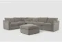 Introducing the Kennedy Mocha 6 Piece Modular Sectional with Ottoman, a perfect addition to your living room. This modern sectional in a rich brown fabric offers both style and comfort. Its reversible design allows for versatile arrangement, making it suitable for any space.