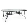 Our Malibu Collection's rust-proof aluminum frame is the perfect understated addition to any outdoor space. The 72 x 42 in. rectangular dining table undergoes an extensive finishing process that includes a powder-coated finish infused with UV-inhibitors to guard against fading and a hand-applied topcoat for added protection from scratches, scuffs, and damage caused by everyday use. It features an opaque, glass top with an umbrella hole, designed to accommodate any of our umbrellas. Place dining chairs around this table and create a set that fits your style.