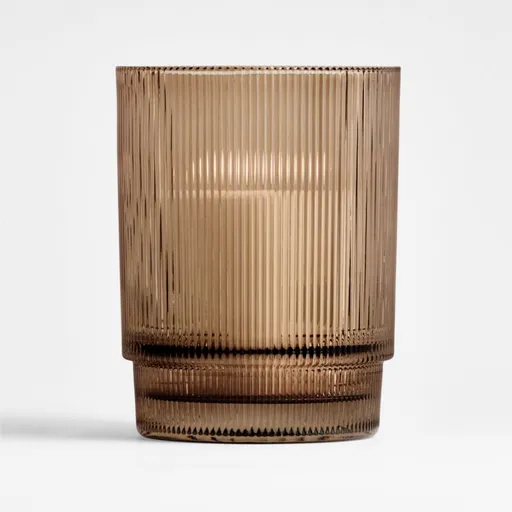 Inspired by our exclusive Atwell drinkware, this candlelight collection is a modern take on classic glass hurricanes. Sparkling tiers of ribbed glass shape a hurricane in a warm grey-brown hue. The ridged surface catches the light while filtering candlelight to create a moody, ethereal glow. Understated yet eye-catching, this tall candle holder mixes and matches effortlessly with the other pieces in our Atwell collection (and doubles as a vase) to set a sophisticated table.