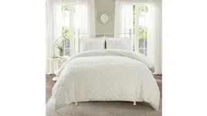 Give your bedroom a cozy shabby chic look with the Madison Park Sabrina 3 Piece Tufted Cotton Chenille Duvet Cover Set. The cotton chenille duvet cover and shams flaunt a tufted floral medallion motif, creating a charming farmhouse look. Made with a 100% cotton face and reverse, this tufted cotton duvet cover set offers a shabby chic update for your bedroom. This bedding set is also OEKO-TEX certified, meaning it does not contain any harmful substances or chemicals to ensure quality comfort and wellness. A button closure helps secure a comforter insert within the duvet cover and inside ties in the corners help prevent it from shifting (insert is NOT included).