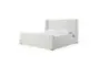 Introducing the Pearson Beige Fabric California King Upholstered Platform Wingback Shelter Bed. This modern wingback bed features a luxurious design that enhances any bedroom decor. With its high performance fabric and soft cottage cheese tone, it provides a comfortable and stylish sleeping experience.