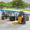 The Chelsea Collection contains concealed cushion seating composed of black and greys for a versatile look that blends with every style. Each piece in this 4 piece swivel loveseat group is handwoven with synthetic flat strands of resin wicker, treated with UV inhibitors, over a powder-coated aluminum frame. Sink into the triple-layer construction and quick-drying, foam-padded cushions of the loveseat and swivel club rockers and relax in comfort. With cushions built-in, you don't have to worry about securing cushions or having to readjust them.