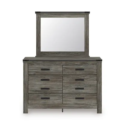 Cool, casual style is for all ages. With this dresser and mirror, they get the function they need plus the refined design you love. Approachably neutral in a rustic warm gray, it’s adaptable enough to pair with an assortment of existing colors and room decor. Faux metal detailing on the corners lends an industrial edge. And smooth-gliding drawers offer storage for clothes, toys and everything in between.