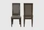 Enhance your dining experience with the Set Of 2 Cammie Grey Wood Dining Chairs. These modern chairs feature a sophisticated brown finish and are crafted from durable pine wood. The 100% polyester seat cushions ensure comfort and easy maintenance, making them perfect for both casual family meals and elegant dinner parties.