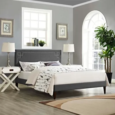 Accelerate your bedroom decor with the Ruthie Platform Bed. Made with a solid wood frame upholstered in polyester fabric, Ruthie features tapered wood legs, plastic foot glides, stylish headboard, and ten sturdy wood slats with a centered supporting bar and two support legs for enhanced stability. Due to the wooden slat support system, the use of a box spring is unnecessary. Ruthie supports memory foam mattresses such as our Aveline series. Perfect for mid-century modern, minimalist and contemporary bedrooms. Mattress not included. Assembly required.