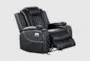 The Cherice Black Glider Recliner offers a perfect blend of comfort and style for your casual living space. Upholstered in luxurious black faux leather, this recliner is designed to provide a relaxing experience with its smooth power reclining action and adjustable headrest. The durable construction ensures long-lasting use, making it a great addition to any home.