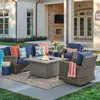 Sonoma Husk Outdoor Wicker with Cushions 4 Piece Swivel Loveseat Group 42 in Sq Sintered Fire Pit Table | Furnzy.com - Shop local furniture stores in one place