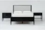 austen black full wood & upholstered platform bedroom set with 2 3-drawer nightstands | panel | storage